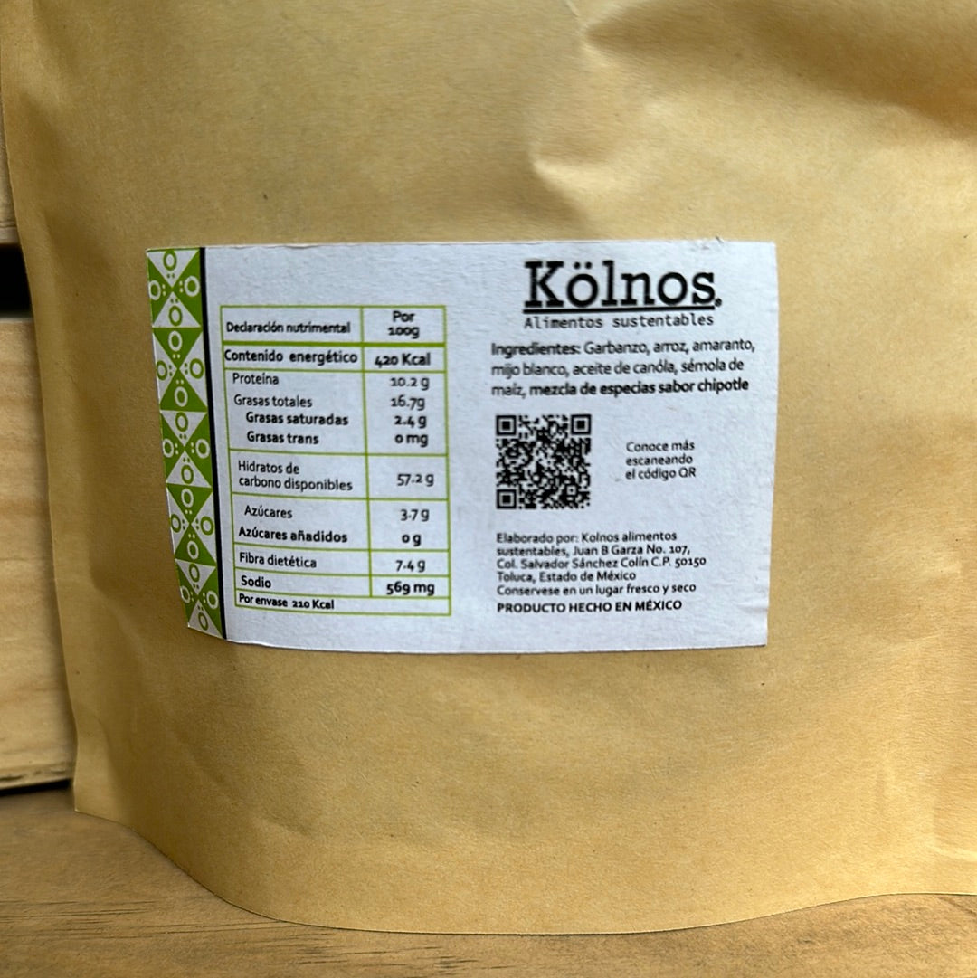 BOTANA HORNEADA DE HARINA DE GARBANZO Y AMARANTO SABOR CHIPOTLE KOLNOS